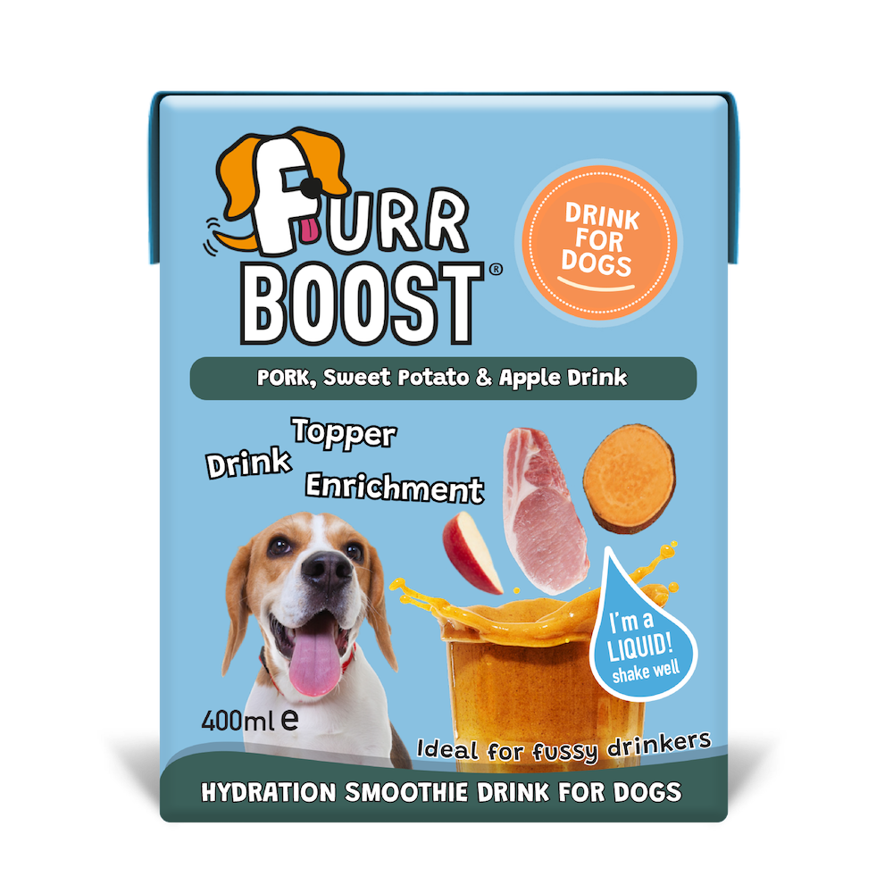 Composition: Water, Pork (10%), Sweet Potato (8%), Apple (4%), Flaxseed Oil, Coconut Oil, Salmon Oil, Dried Sea Kelp, Chicory root extract (as a source of the prebiotics FOS and Inulin, 0.36%), Yeast products (as a source of beta glucans, 0.004%):